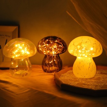 Venta directa de fábrica, luz nocturna de estilo nórdico, diseño creativo de setas, ambiente de luz cálida para cabecera